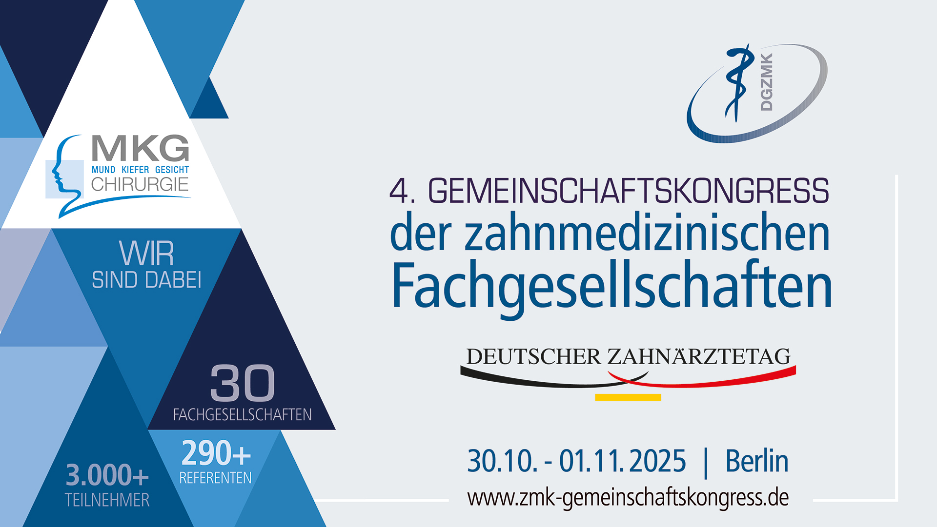 75. Kongress & Praxisführungsseminar der Deutschen Gesellschaft für Mund-, Kiefer- und Gesichtschirurgie im Rahmen des 4. Gemeinshcaftskongresses der zahnmedizinischen Fachgesellschaften vom 30.10 – 01.11.2025 in Berlin gestartet ist.